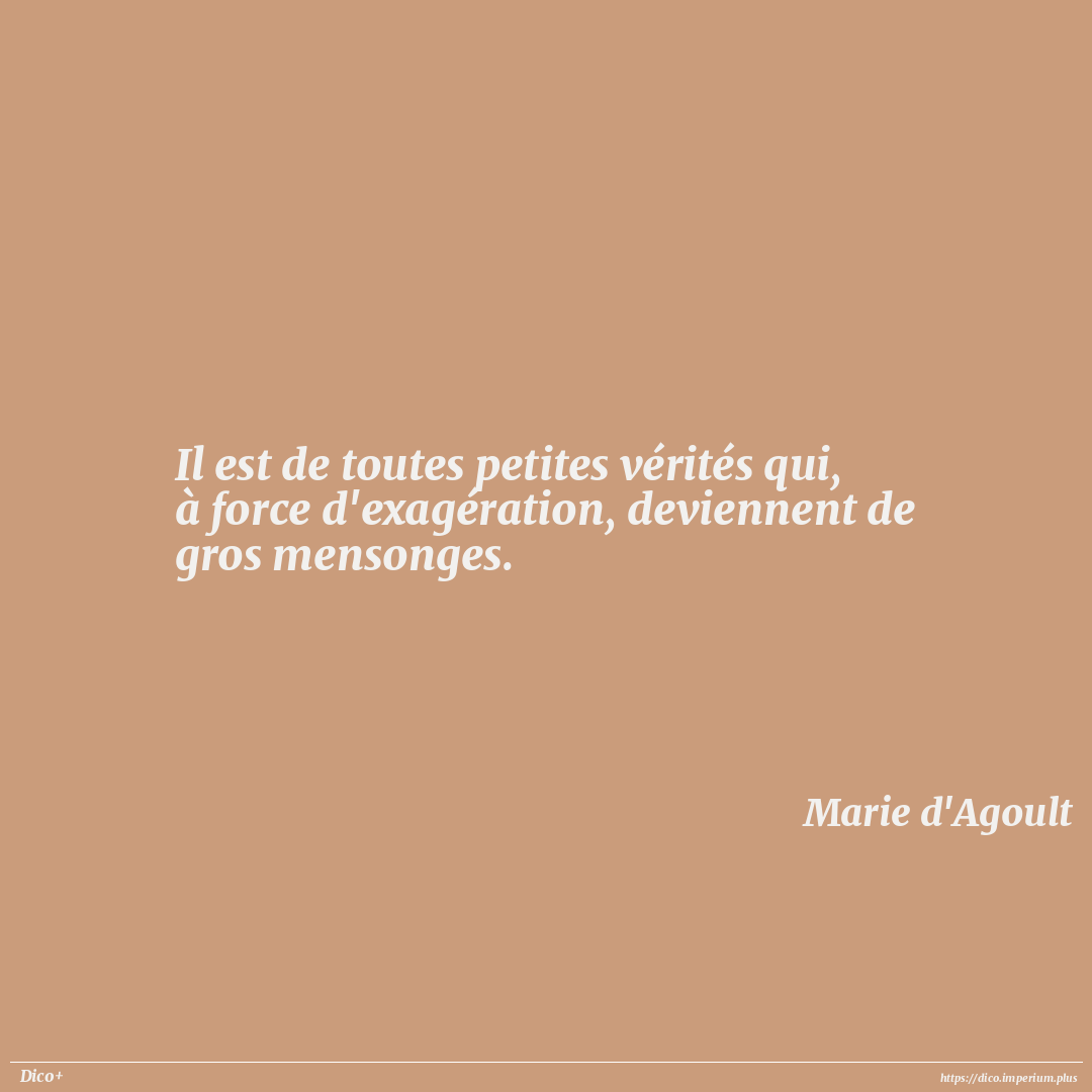 Il est de toutes petites vérités qui, à force d'exagération, deviennent de gros mensonges.