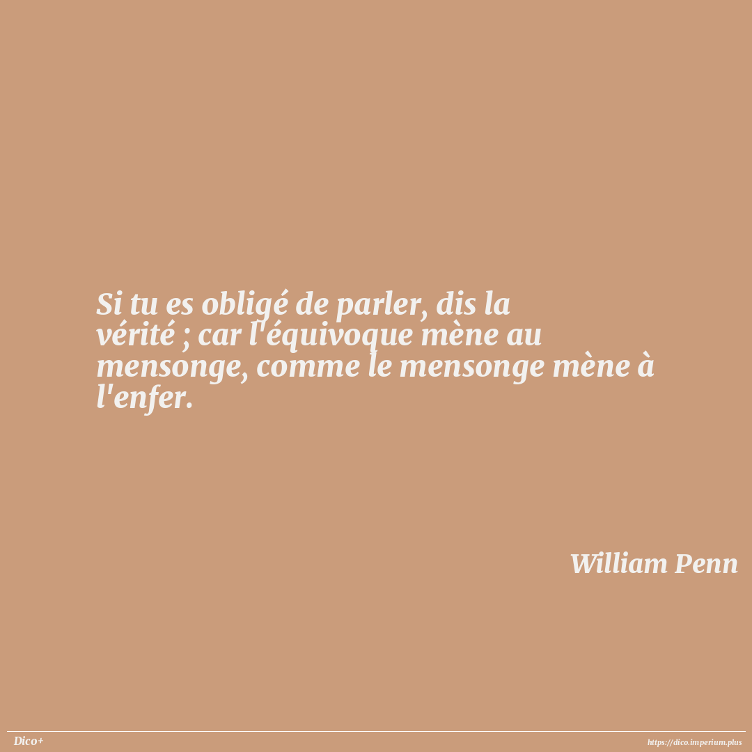 Si tu es obligé de parler, dis la vérité ; car l'équivoque mène au mensonge, comme le mensonge mène à l'enfer.