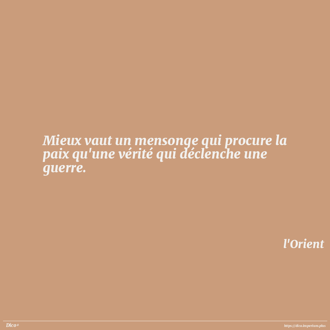Mieux vaut un mensonge qui procure la paix qu'une vérité qui déclenche une guerre.
