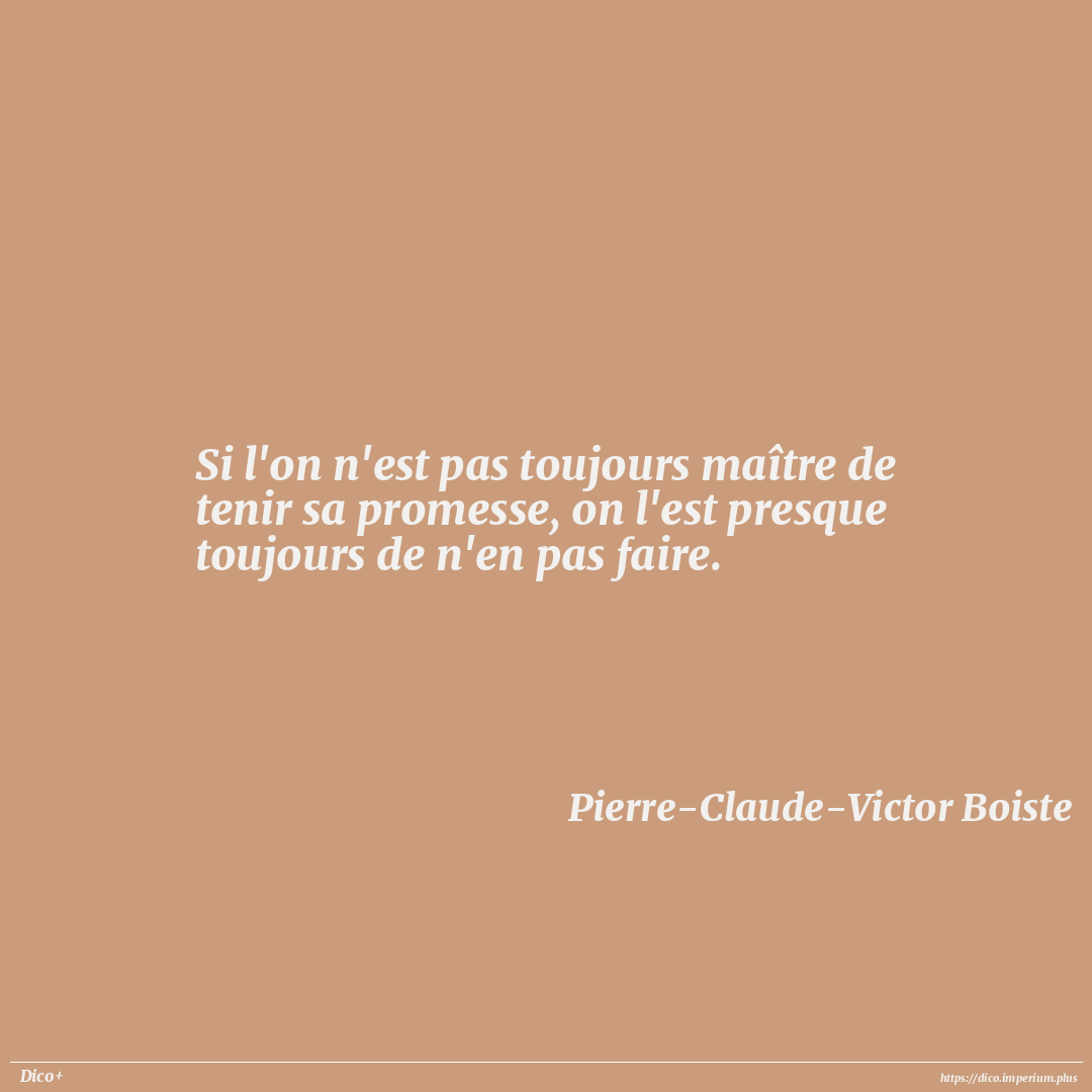 Si l'on n'est pas toujours maître de tenir sa promesse, on l'est presque toujours de n'en pas faire.