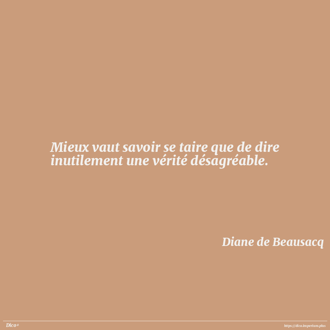 Mieux vaut savoir se taire que de dire inutilement une vérité désagréable.