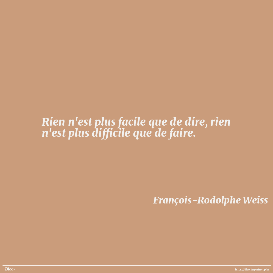 Rien n'est plus facile que de dire, rien n'est plus difficile que de faire.