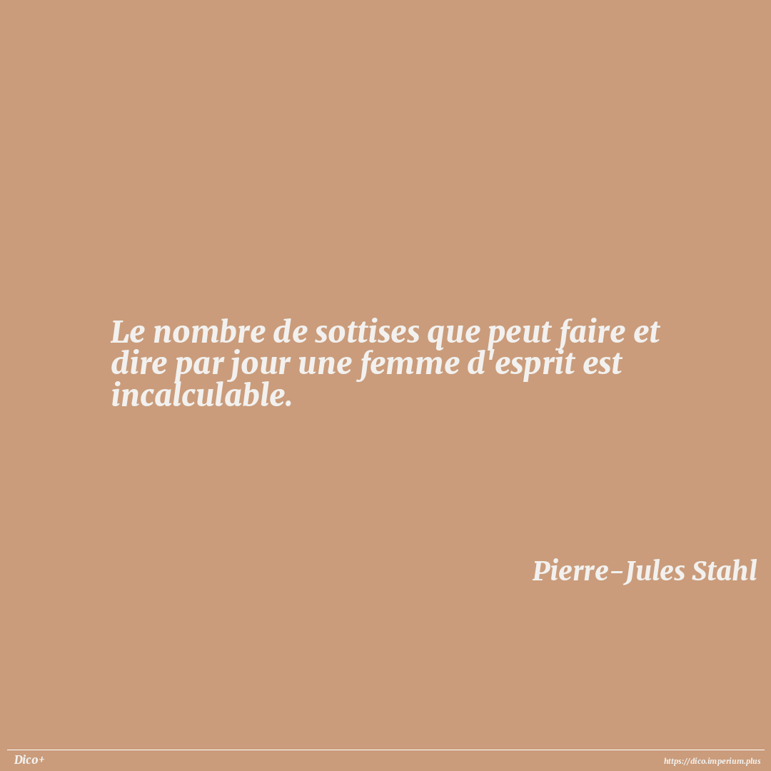 Le nombre de sottises que peut faire et dire par jour une femme d'esprit est incalculable.