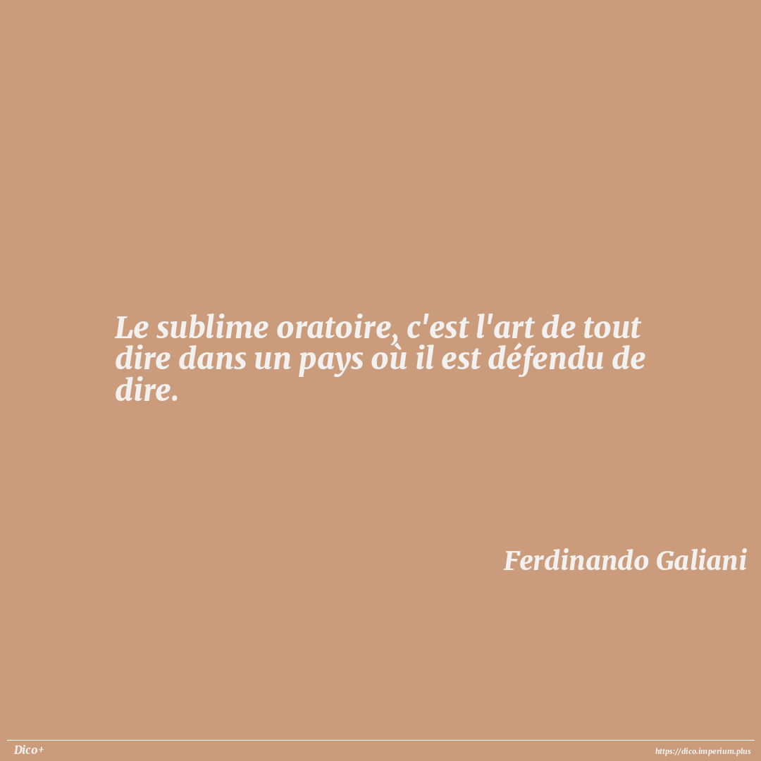 Le sublime oratoire, c'est l'art de tout dire dans un pays où il est défendu de dire.