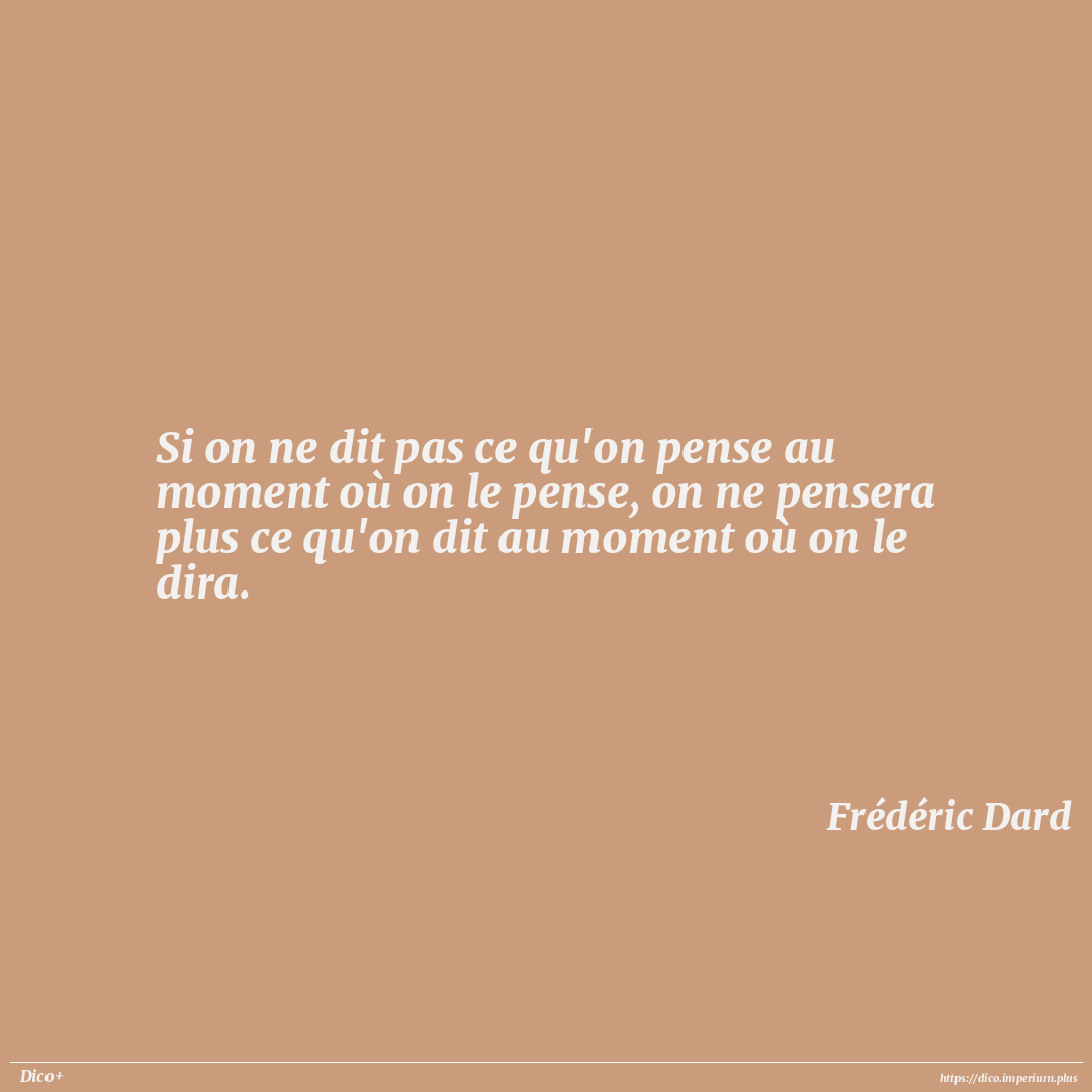 Si on ne dit pas ce qu'on pense au moment où on le pense, on ne pensera plus ce qu'on dit au moment où on le dira.