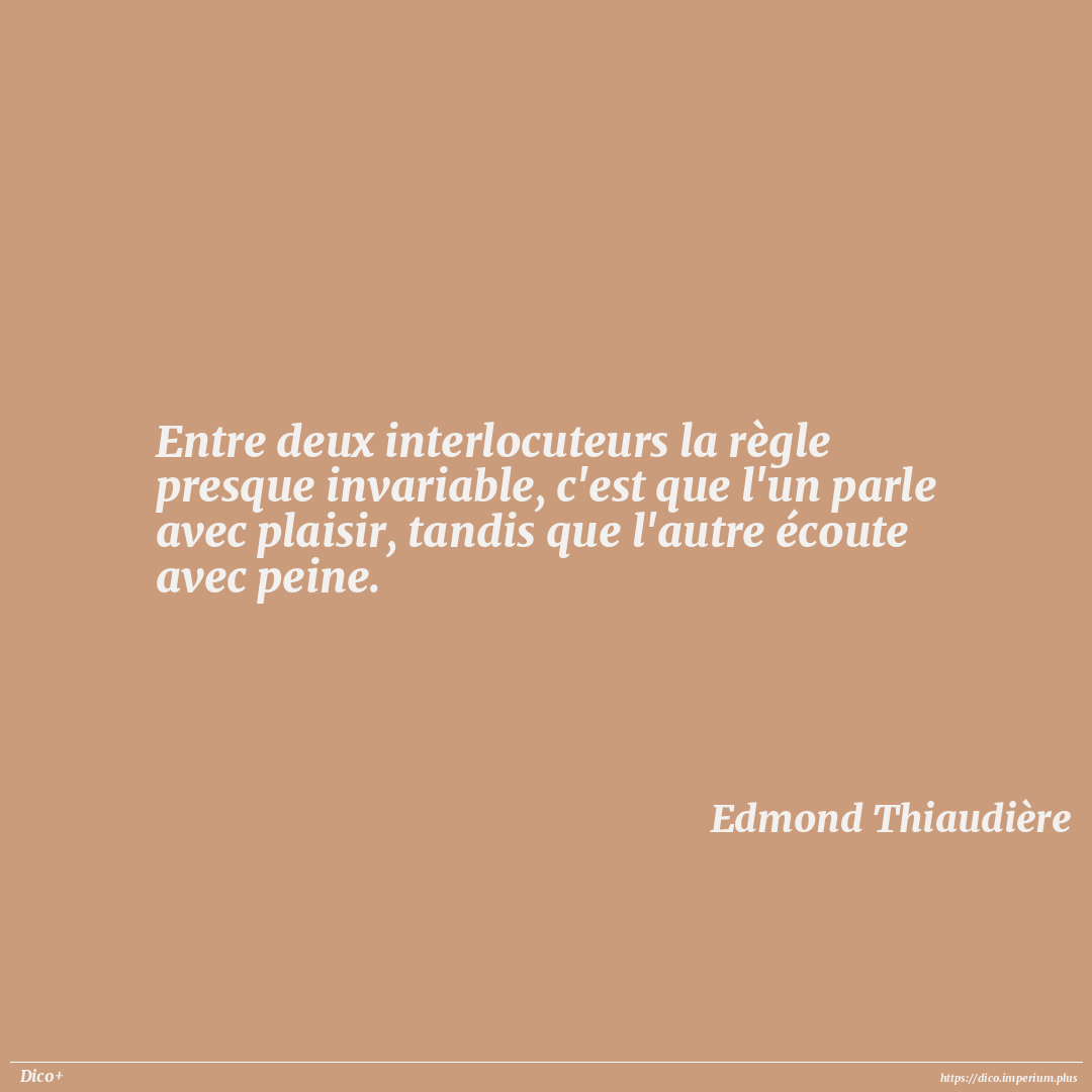 Entre deux interlocuteurs la règle presque invariable, c'est que l'un parle avec plaisir, tandis que l'autre écoute avec peine.