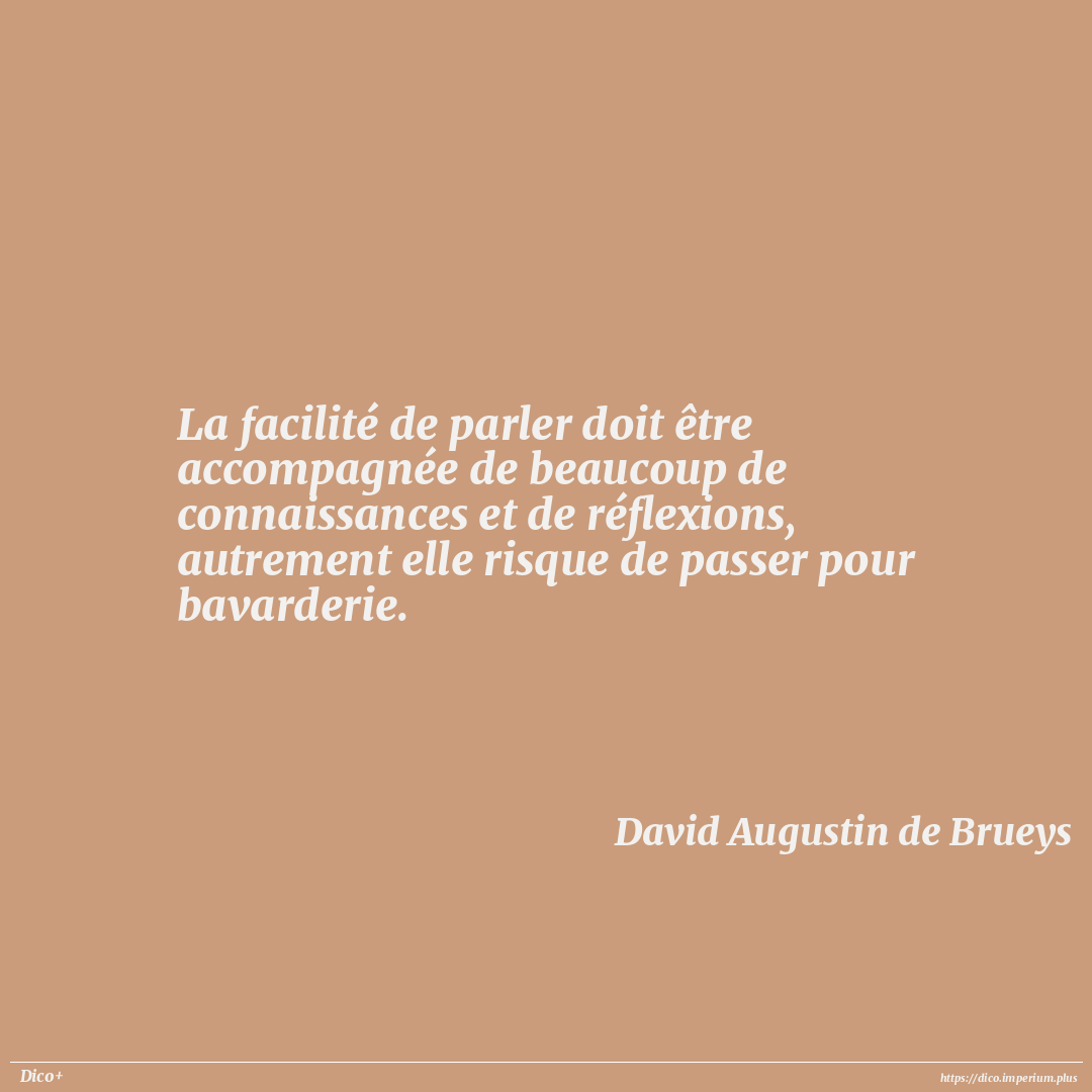 La facilité de parler doit être accompagnée de beaucoup de connaissances et de réflexions, autrement elle risque de passer pour bavarderie.