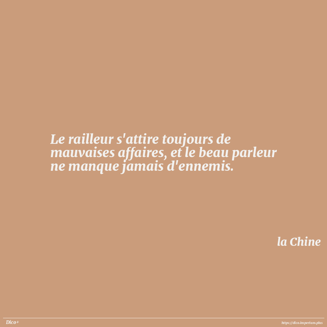 Le railleur s'attire toujours de mauvaises affaires, et le beau parleur ne manque jamais d'ennemis.