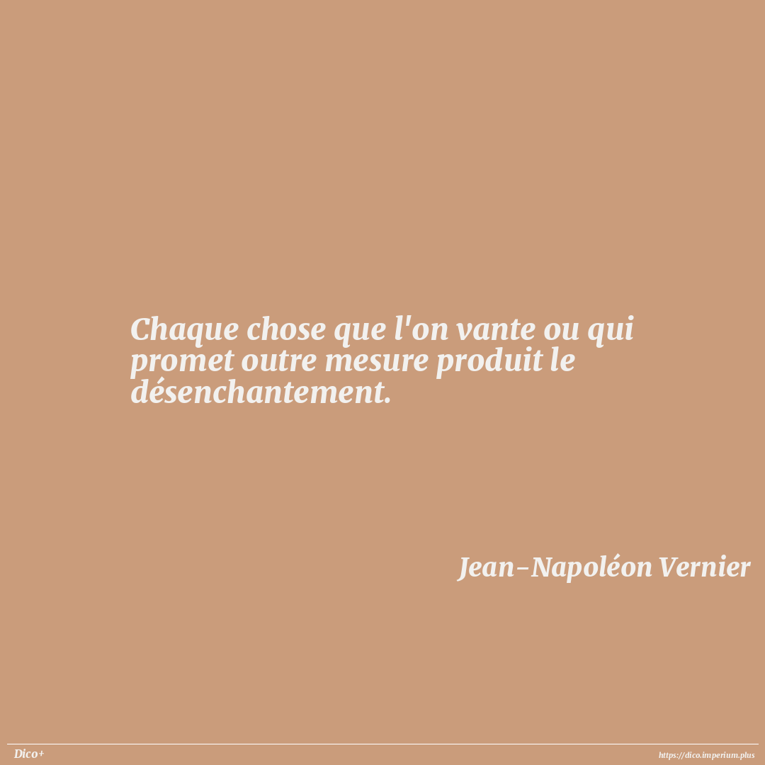 Chaque chose que l'on vante ou qui promet outre mesure produit le désenchantement.