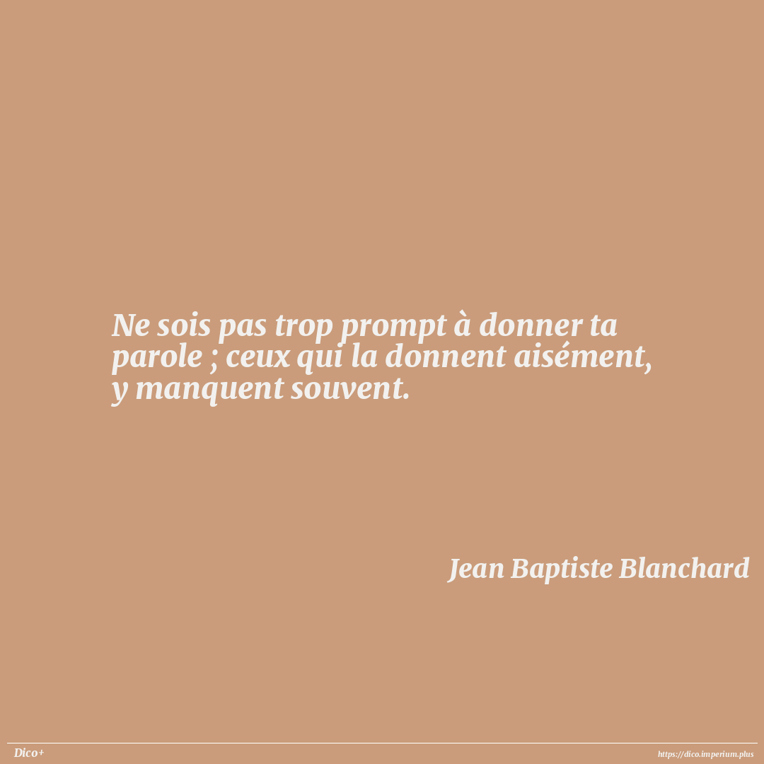 Ne sois pas trop prompt à donner ta parole ; ceux qui la donnent aisément, y manquent souvent.