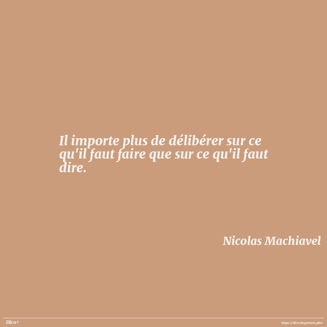 Il importe plus de délibérer sur ce qu'il faut faire que sur ce qu'il faut dire.