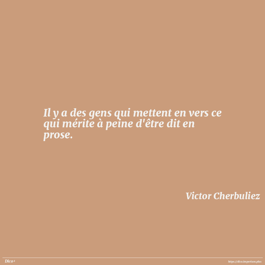 Il y a des gens qui mettent en vers ce qui mérite à peine d'être dit en prose.