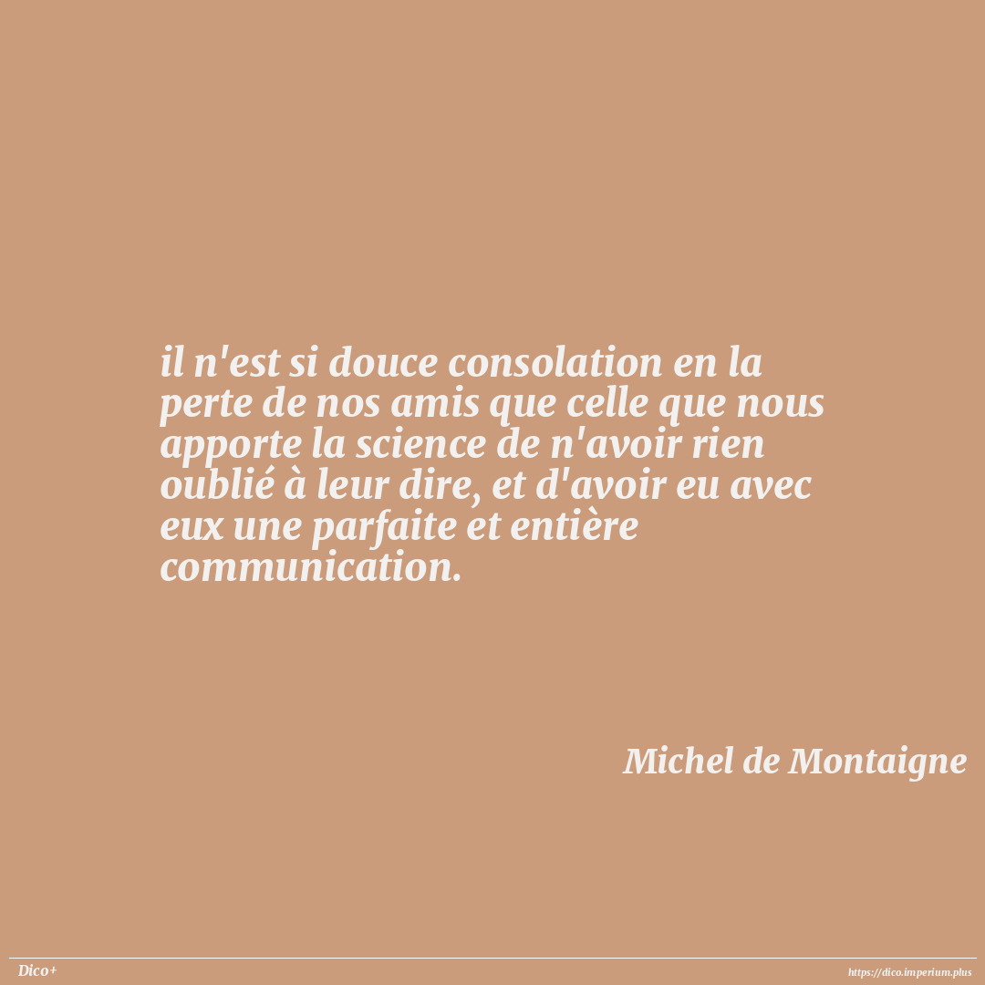 il n'est si douce consolation en la perte de nos amis que celle que nous apporte la science de n'avoir rien oublié à leur dire, et d'avoir eu avec eux une parfaite et entière communication.