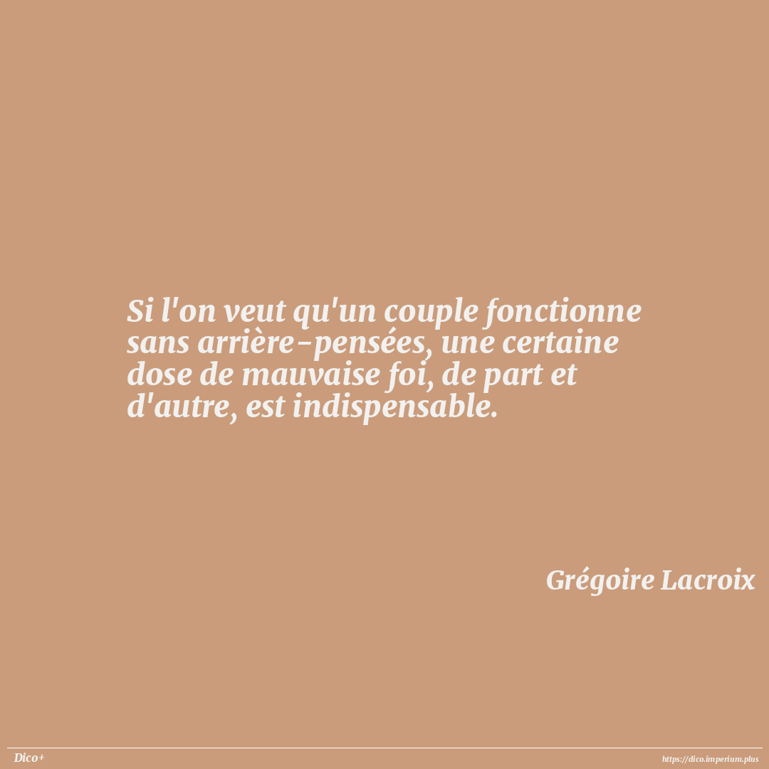 Si l'on veut qu'un couple fonctionne sans arrière-pensées, une certaine dose de mauvaise foi, de part et d'autre, est indispensable.
