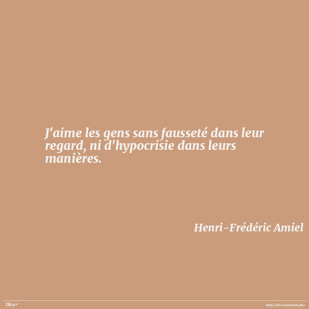 J'aime les gens sans fausseté dans leur regard, ni d'hypocrisie dans leurs manières.