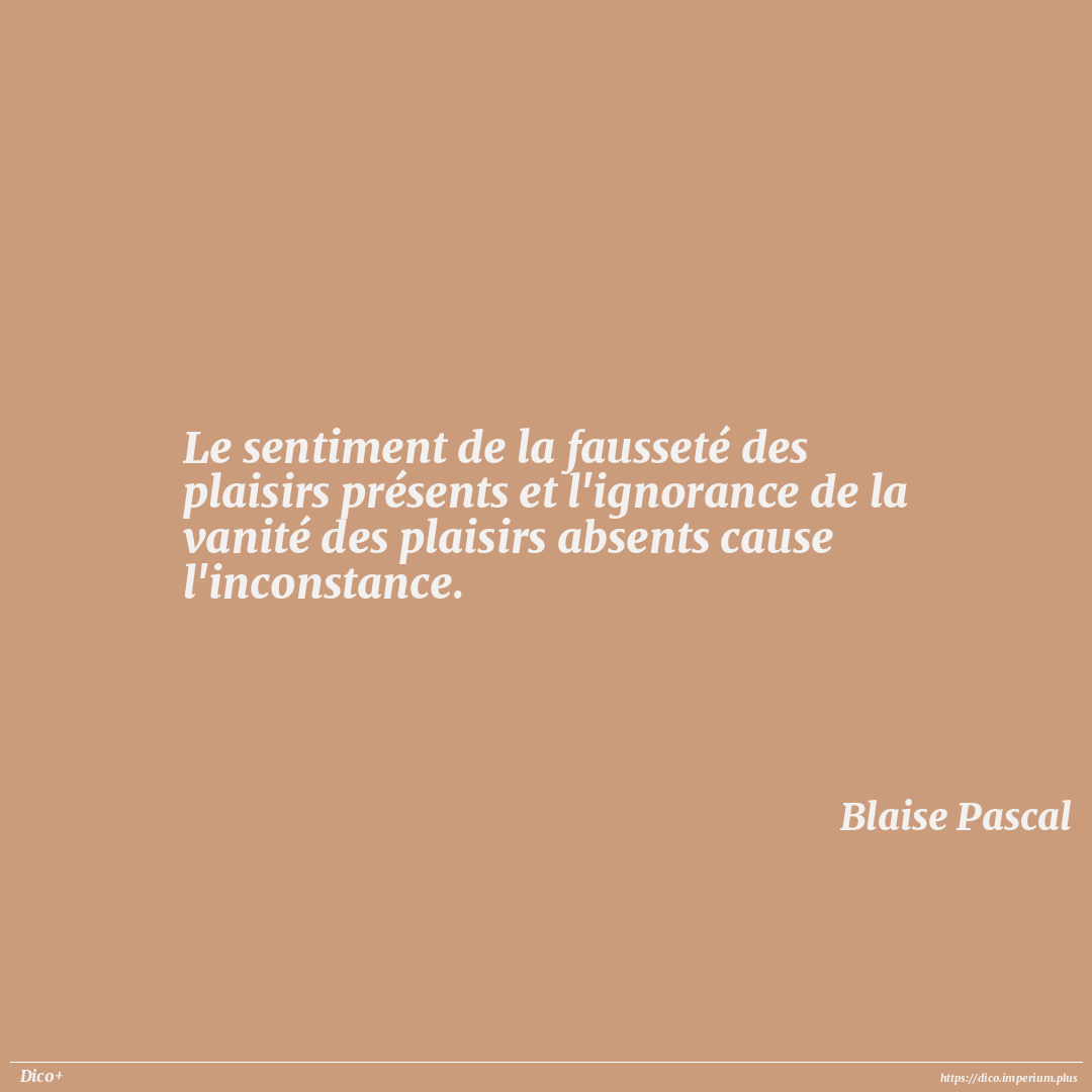 Le sentiment de la fausseté des plaisirs présents et l'ignorance de la vanité des plaisirs absents cause l'inconstance.