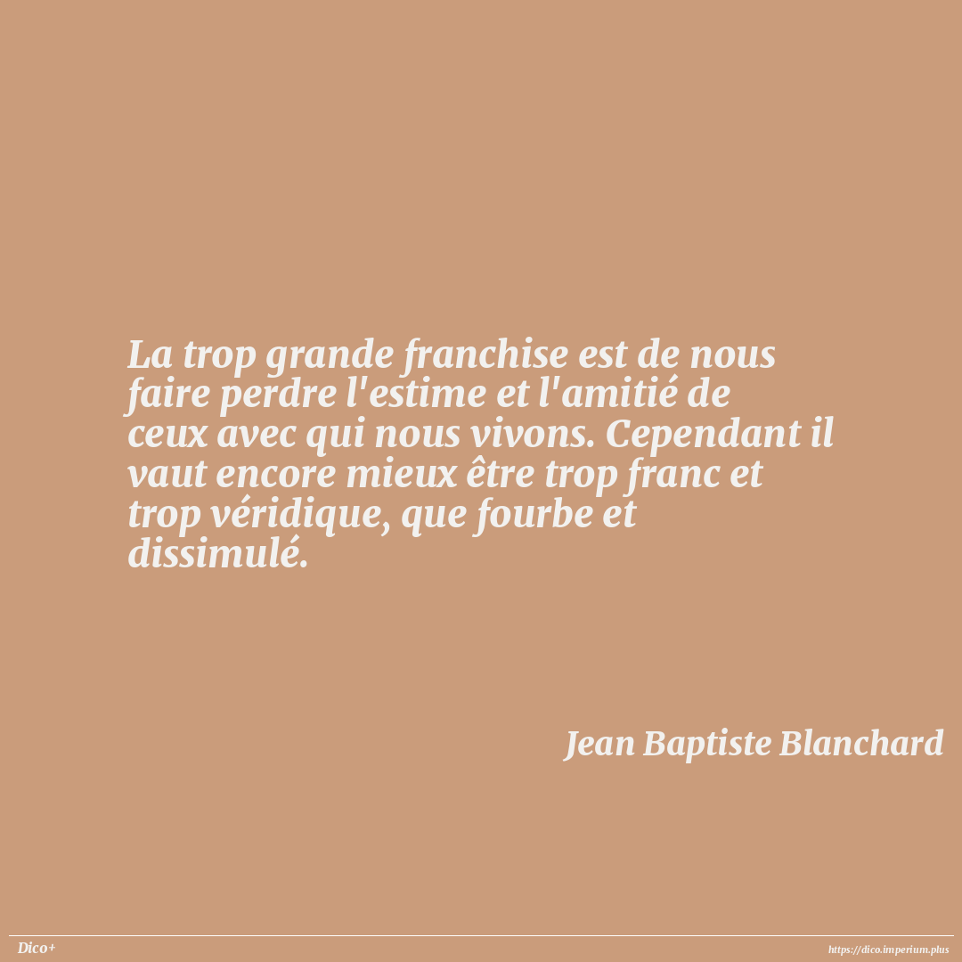 La trop grande franchise est de nous faire perdre l'estime et l'amitié de ceux avec qui nous vivons. Cependant il vaut encore mieux être trop franc et trop véridique, que fourbe et dissimulé.