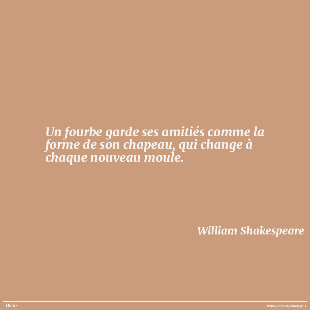 Un fourbe garde ses amitiés comme la forme de son chapeau, qui change à chaque nouveau moule.