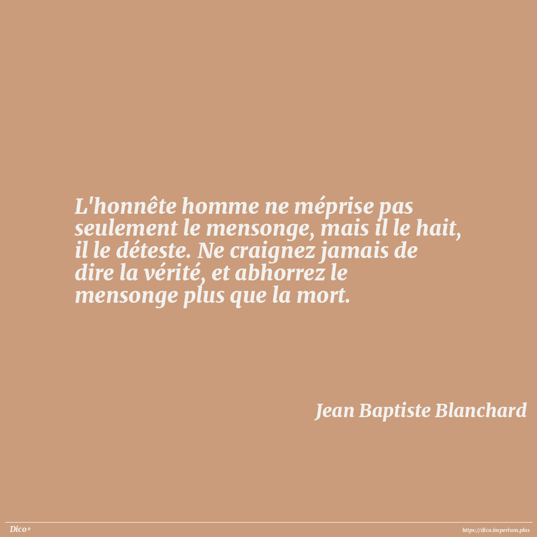 L'honnête homme ne méprise pas seulement le mensonge, mais il le hait, il le déteste. Ne craignez jamais de dire la vérité, et abhorrez le mensonge plus que la mort.