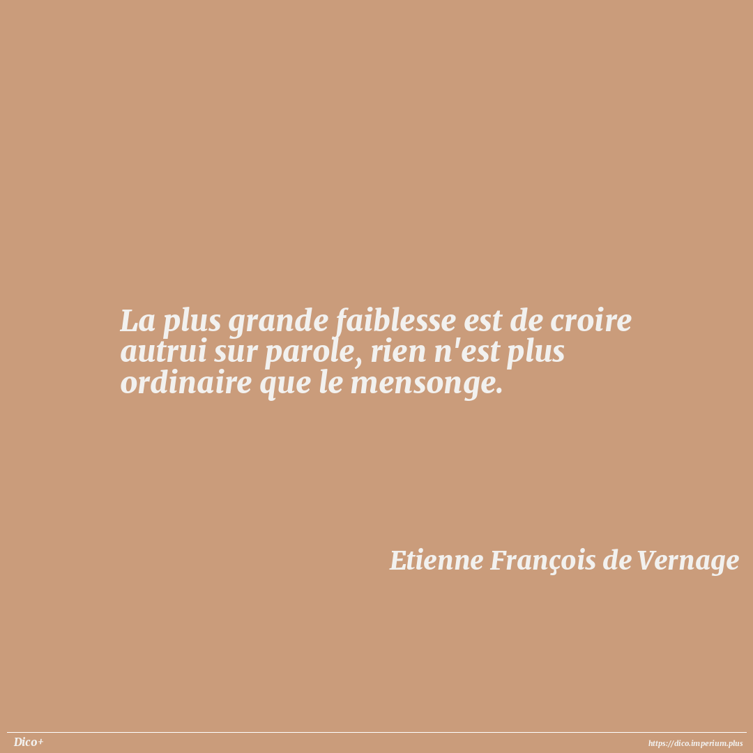 La plus grande faiblesse est de croire autrui sur parole, rien n'est plus ordinaire que le mensonge.