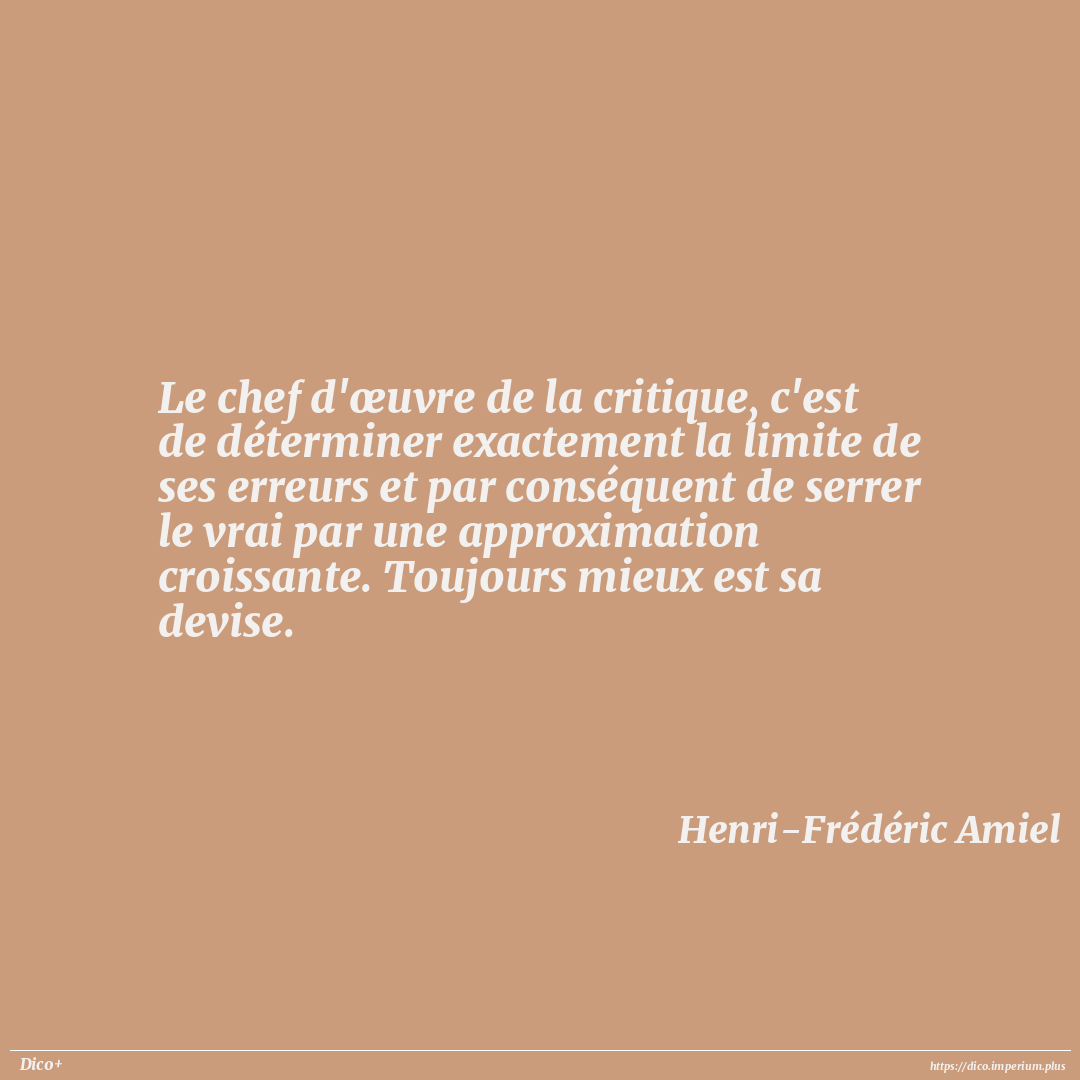 Le chef d'œuvre de la critique, c'est de déterminer exactement la limite de ses erreurs et par conséquent de serrer le vrai par une approximation croissante. Toujours mieux est sa devise.