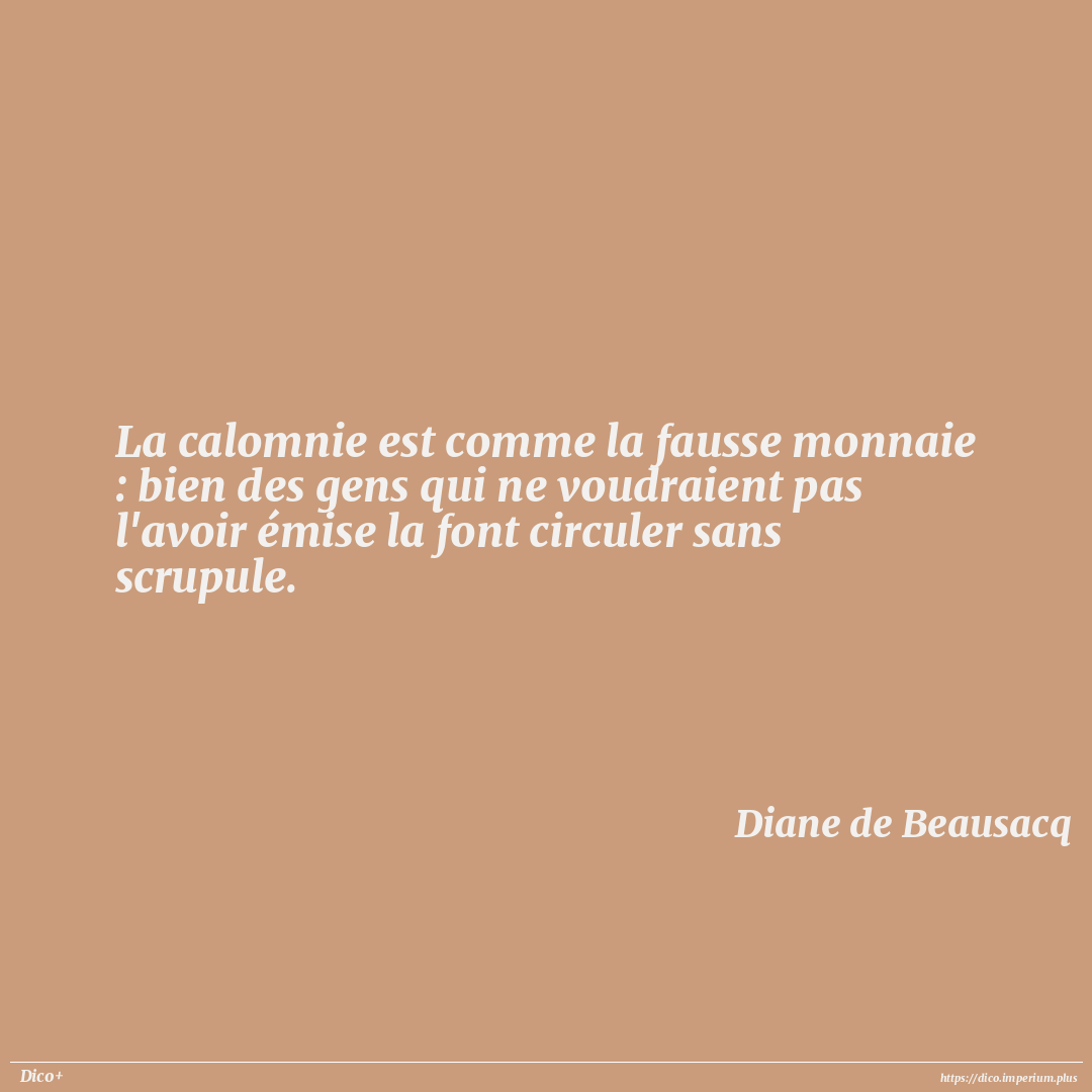 La calomnie est comme la fausse monnaie : bien des gens qui ne voudraient pas l'avoir émise la font circuler sans scrupule.