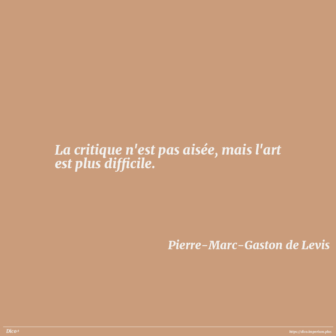 La critique n'est pas aisée, mais l'art est plus difficile.