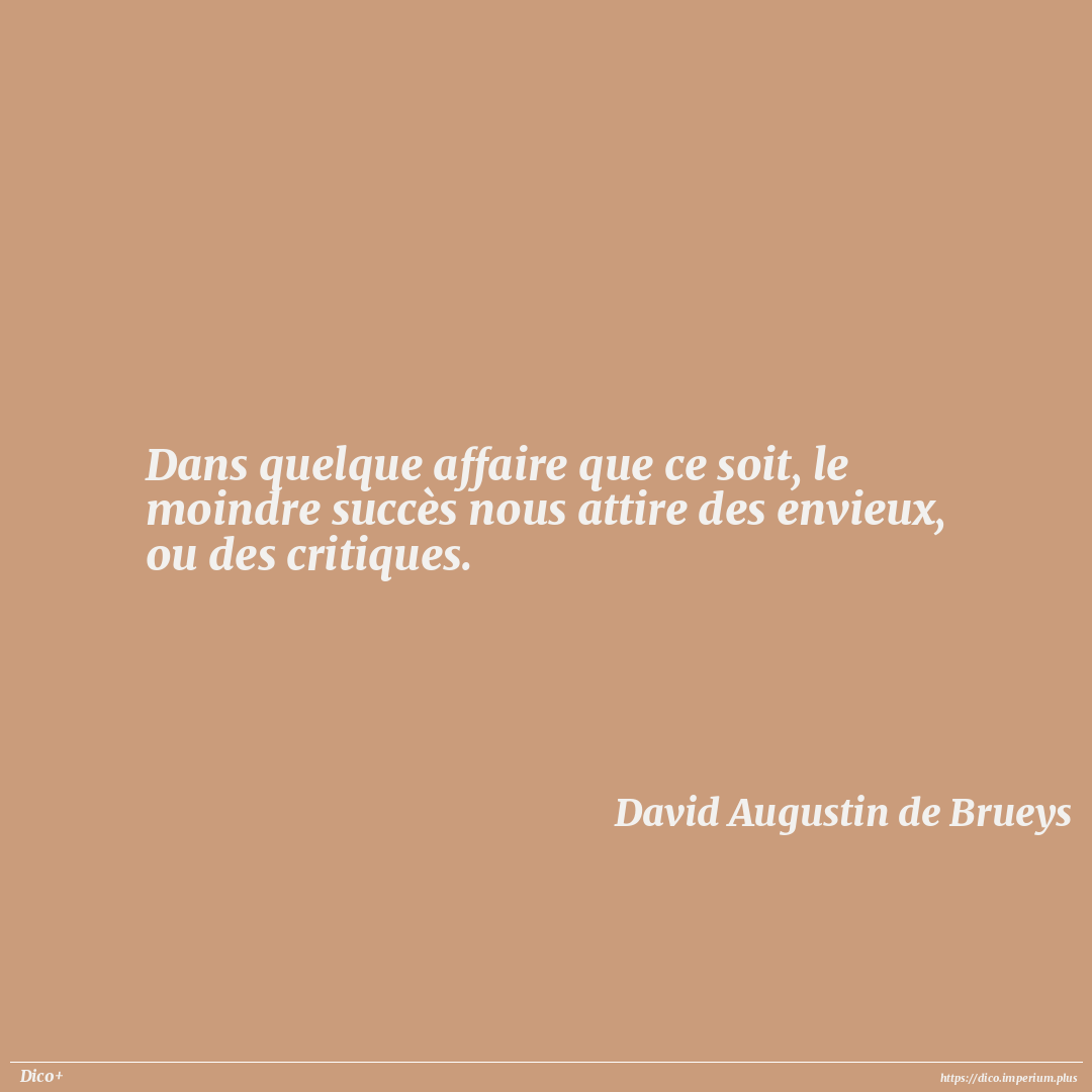 Dans quelque affaire que ce soit, le moindre succès nous attire des envieux, ou des critiques.