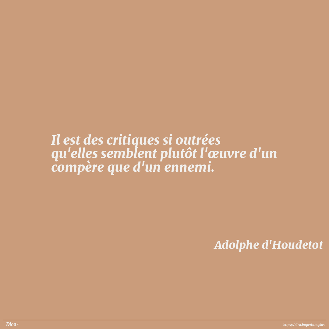 Il est des critiques si outrées qu'elles semblent plutôt l'œuvre d'un compère que d'un ennemi.
