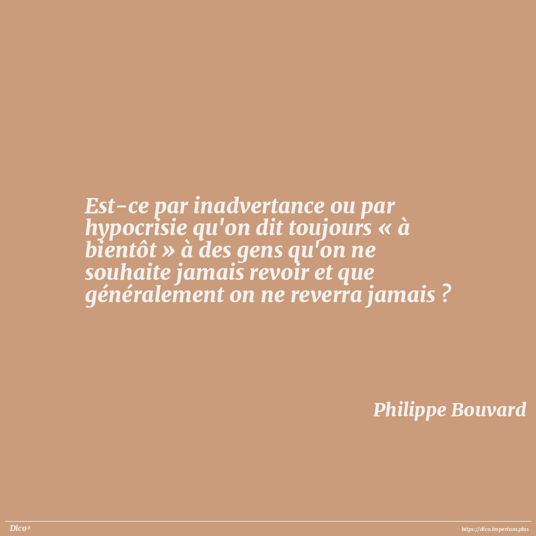Est-ce par inadvertance ou par hypocrisie qu'on dit toujours « à bientôt » à des gens qu'on ne souhaite jamais revoir et que généralement on ne reverra jamais ?