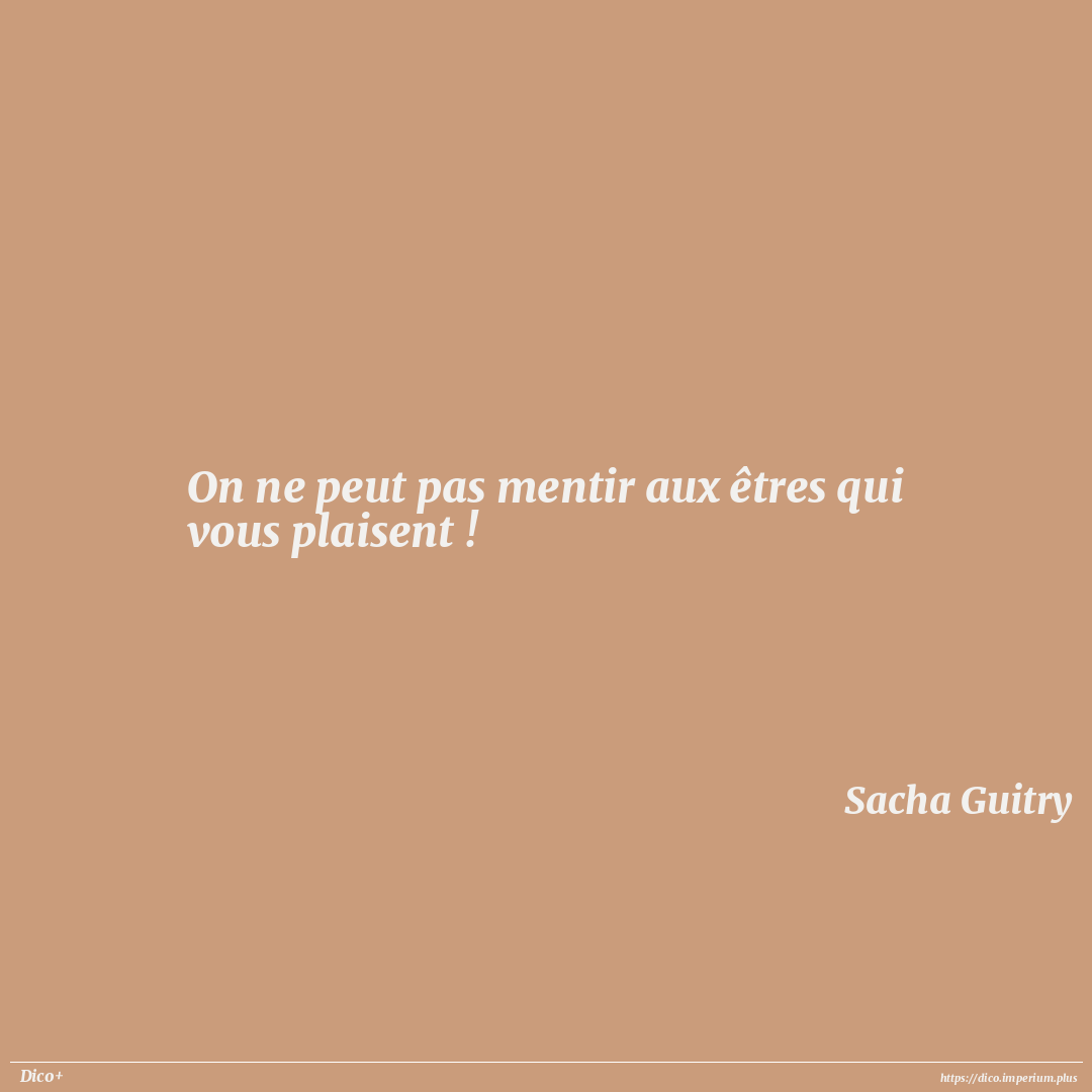 On ne peut pas mentir aux êtres qui vous plaisent !
