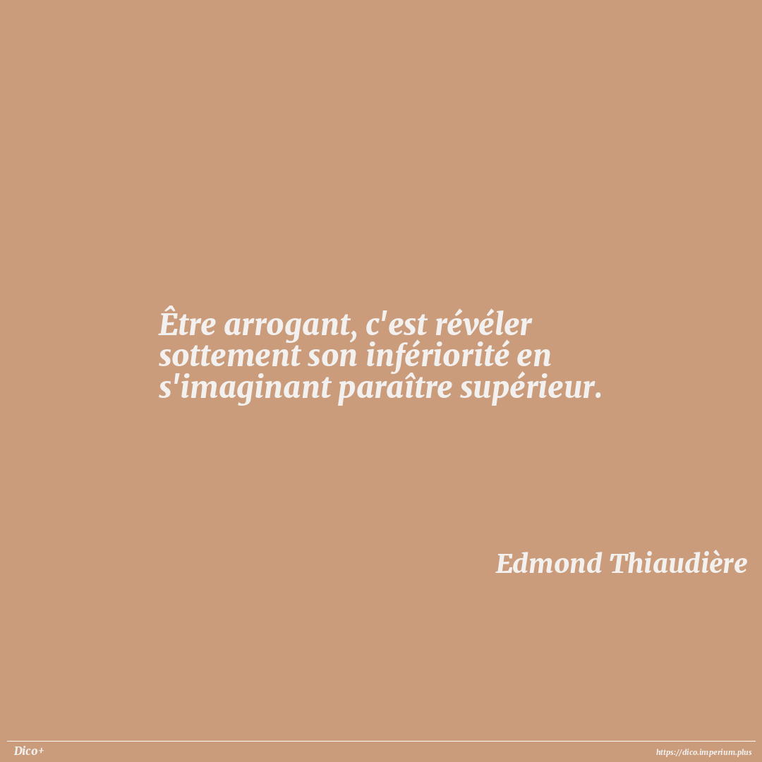Être arrogant, c'est révéler sottement son infériorité en s'imaginant paraître supérieur.