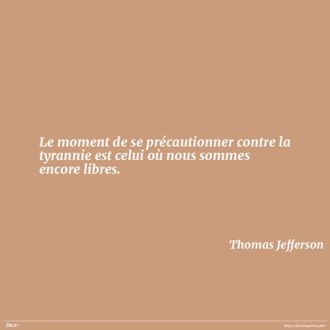 Le moment de se précautionner contre la tyrannie est celui où nous sommes encore libres.