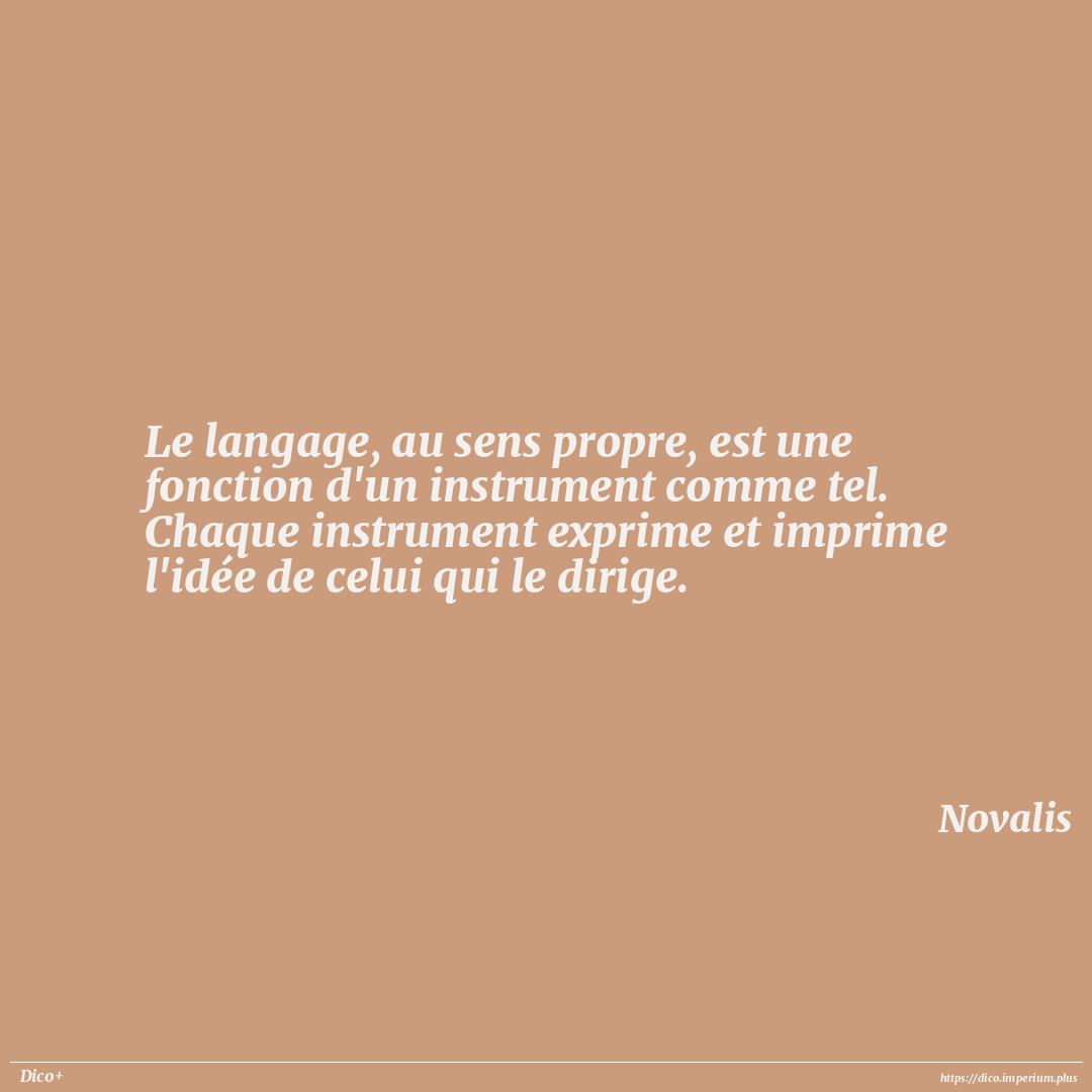 Le langage, au sens propre, est une fonction d'un instrument comme tel. Chaque instrument exprime et imprime l'idée de celui qui le dirige.