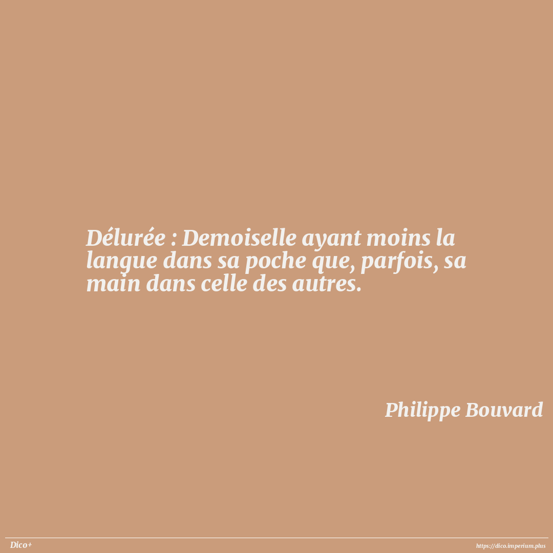 Délurée : Demoiselle ayant moins la langue dans sa poche que, parfois, sa main dans celle des autres.
