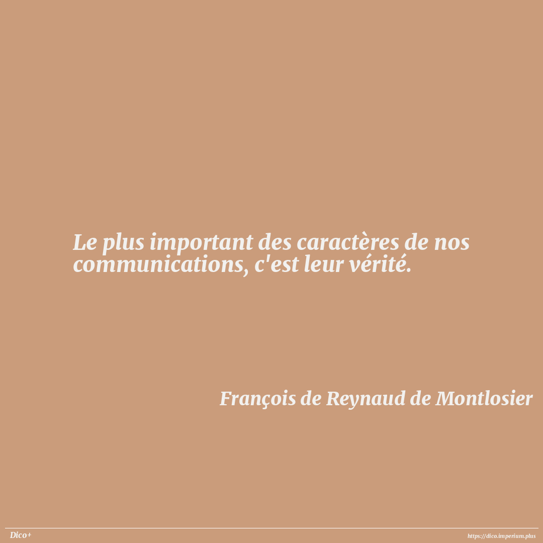 Le plus important des caractères de nos communications, c'est leur vérité.