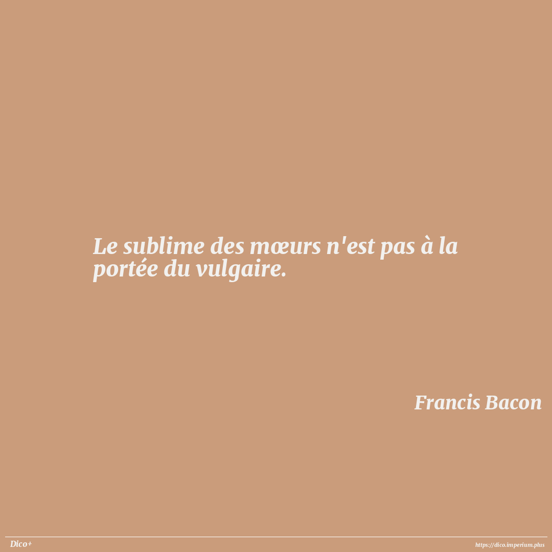 Le sublime des mœurs n'est pas à la portée du vulgaire.