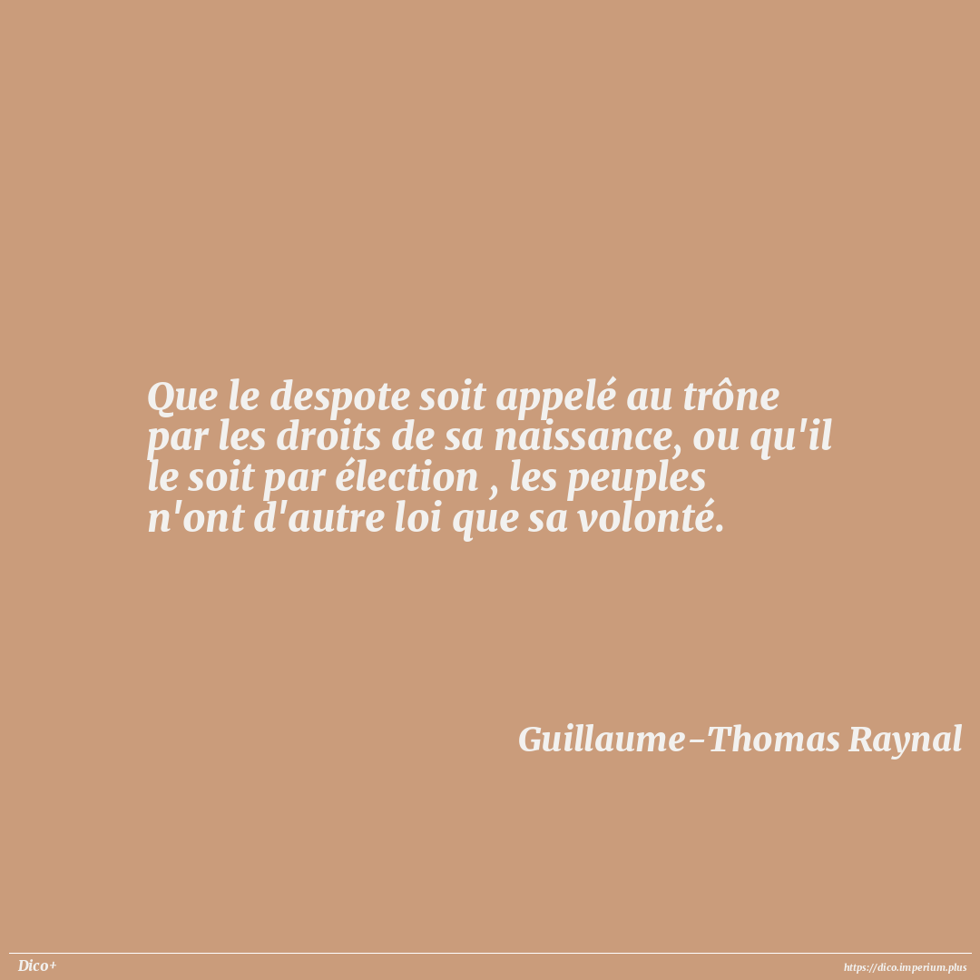 Que le despote soit appelé au trône par les droits de sa naissance, ou qu'il le soit par élection , les peuples n'ont d'autre loi que sa volonté.