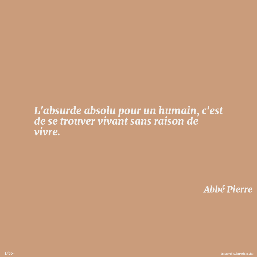 L'absurde absolu pour un humain, c'est de se trouver vivant sans raison de vivre.