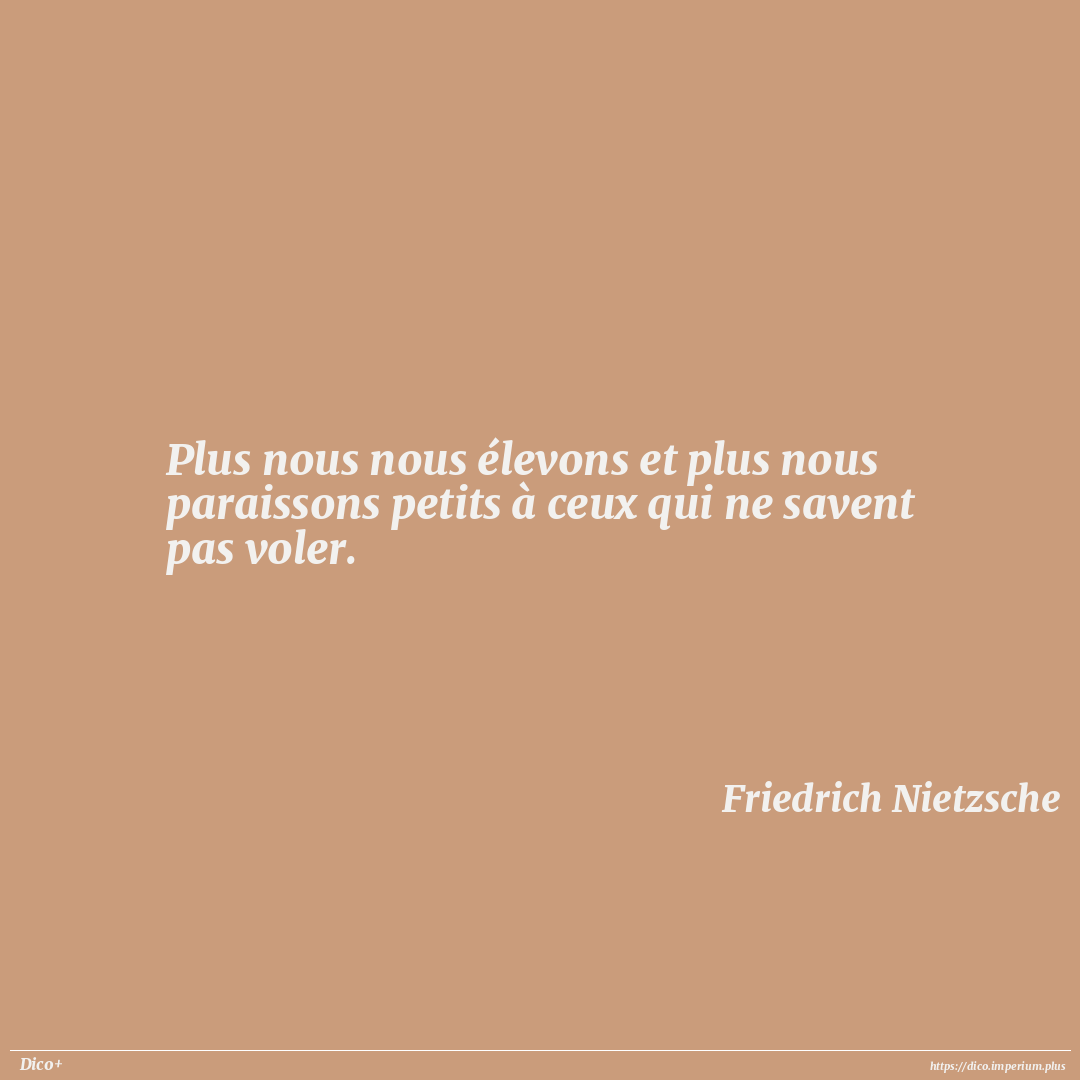 Plus nous nous élevons et plus nous paraissons petits à ceux qui ne savent pas voler.