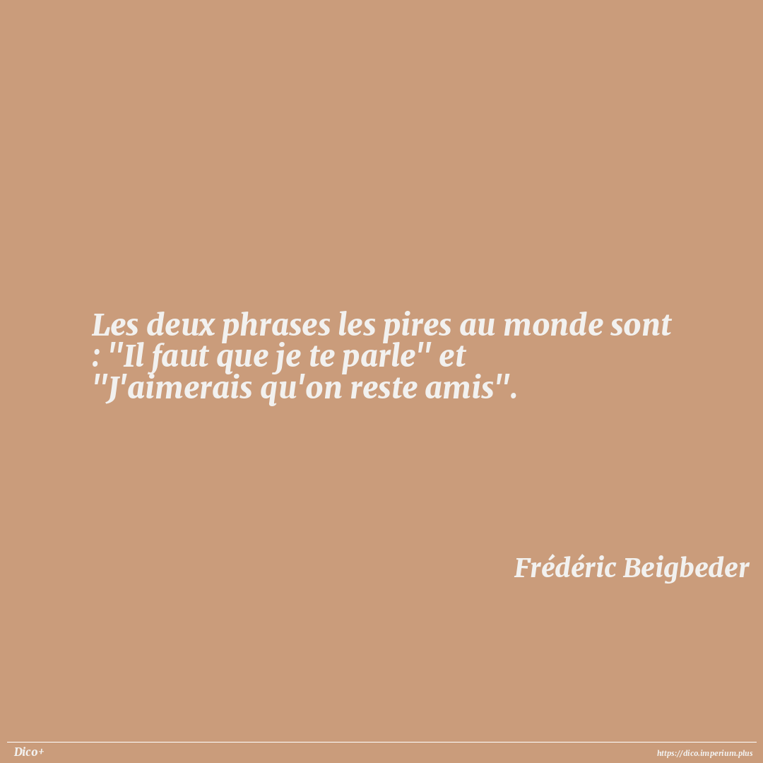 Les deux phrases les pires au monde sont : "Il faut que je te parle" et "J'aimerais qu'on reste amis".