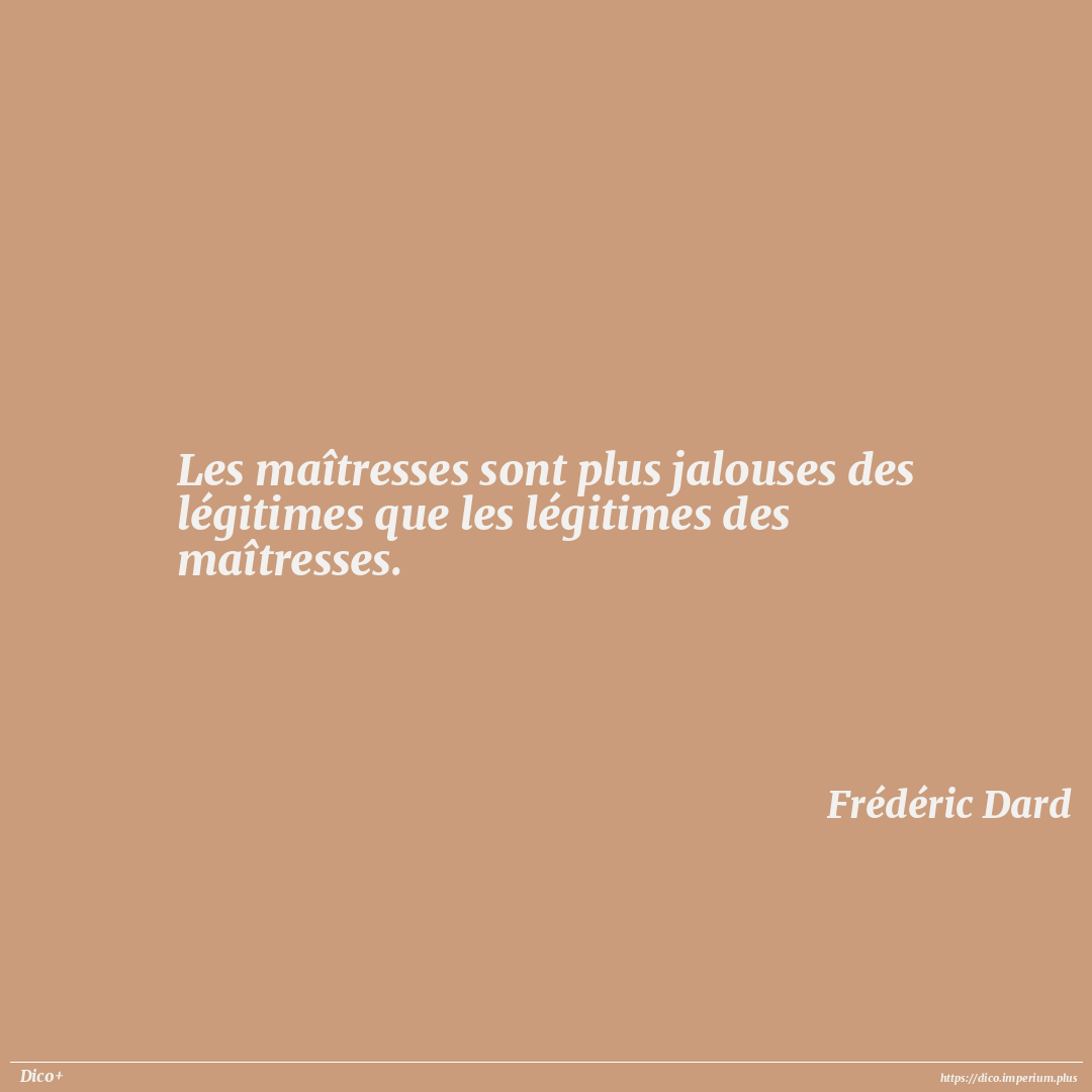 Les maîtresses sont plus jalouses des légitimes que les légitimes des maîtresses.