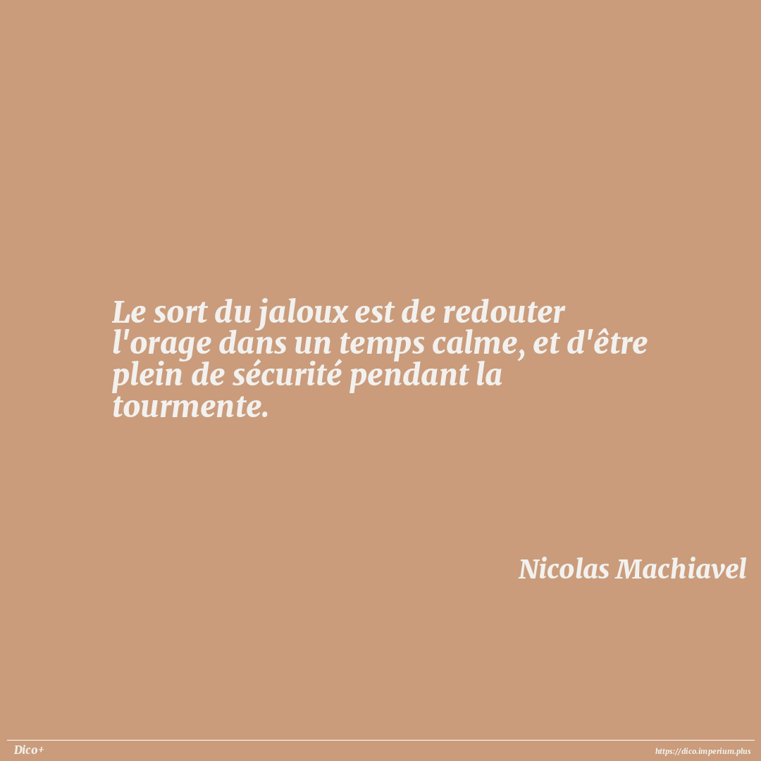 Le sort du jaloux est de redouter l'orage dans un temps calme, et d'être plein de sécurité pendant la tourmente.