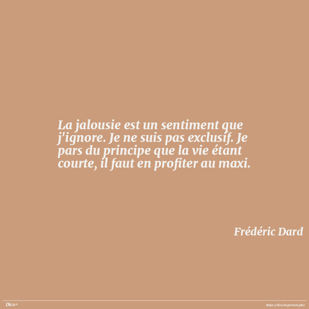 La jalousie est un sentiment que j'ignore. Je ne suis pas exclusif. Je pars du principe que la vie étant courte, il faut en profiter au maxi.