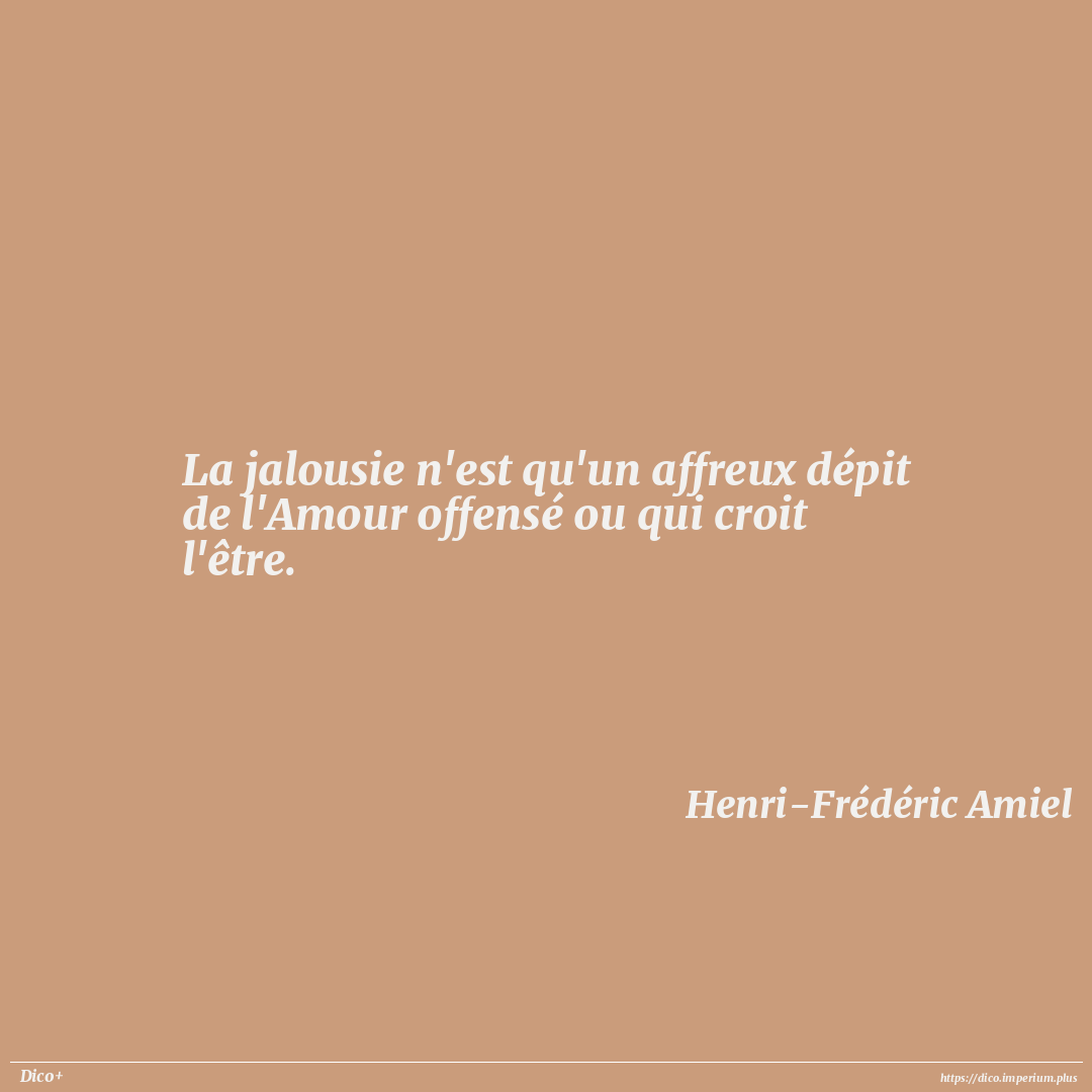 La jalousie n'est qu'un affreux dépit de l'Amour offensé ou qui croit l'être.