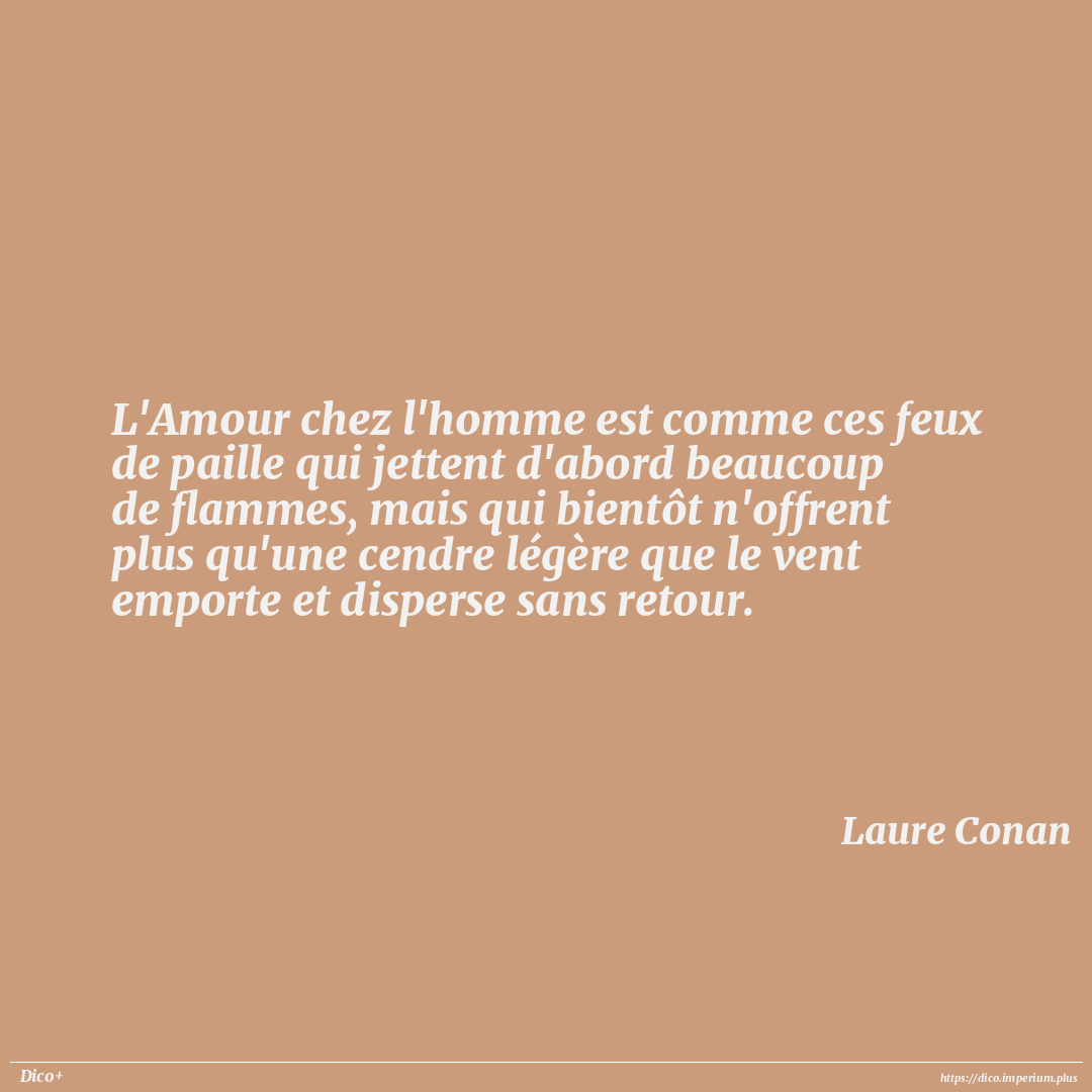 L'Amour chez l'homme est comme ces feux de paille qui jettent d'abord beaucoup de flammes, mais qui bientôt n'offrent plus qu'une cendre légère que le vent emporte et disperse sans retour.