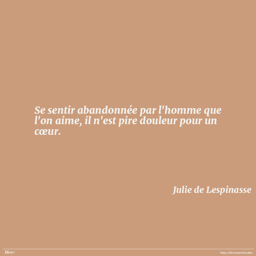 Se sentir abandonnée par l'homme que l'on aime, il n'est pire douleur pour un cœur.