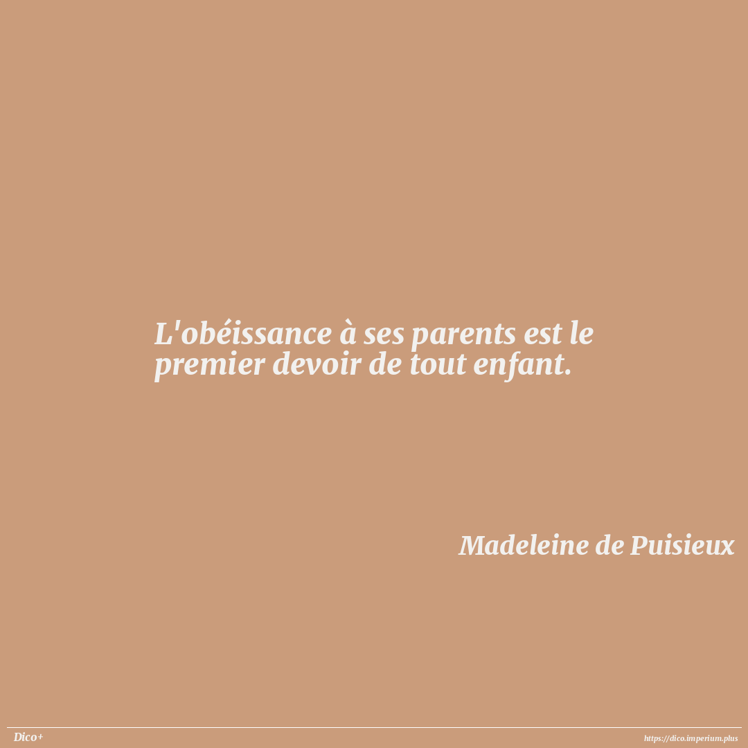 L'obéissance à ses parents est le premier devoir de tout enfant.