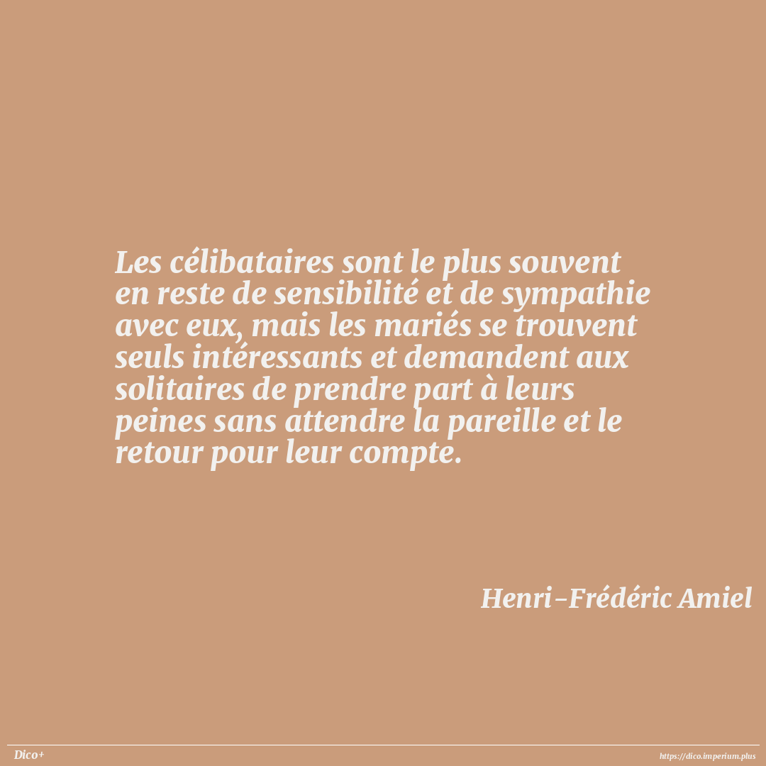 Les célibataires sont le plus souvent en reste de sensibilité et de sympathie avec eux, mais les mariés se trouvent seuls intéressants et demandent aux solitaires de prendre part à leurs peines sans attendre la pareille et le retour pour leur compte.