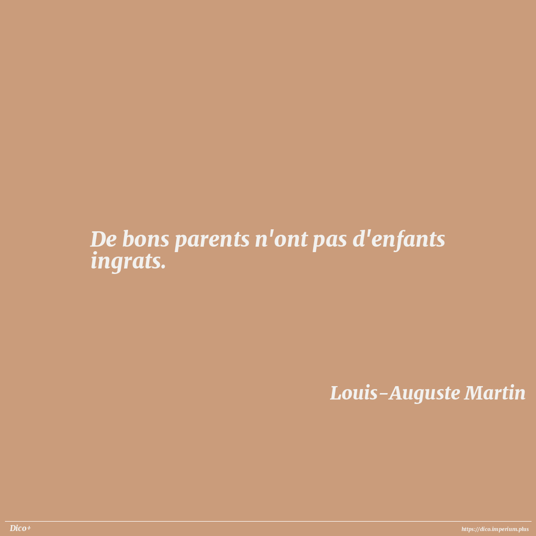 De bons parents n'ont pas d'enfants ingrats.